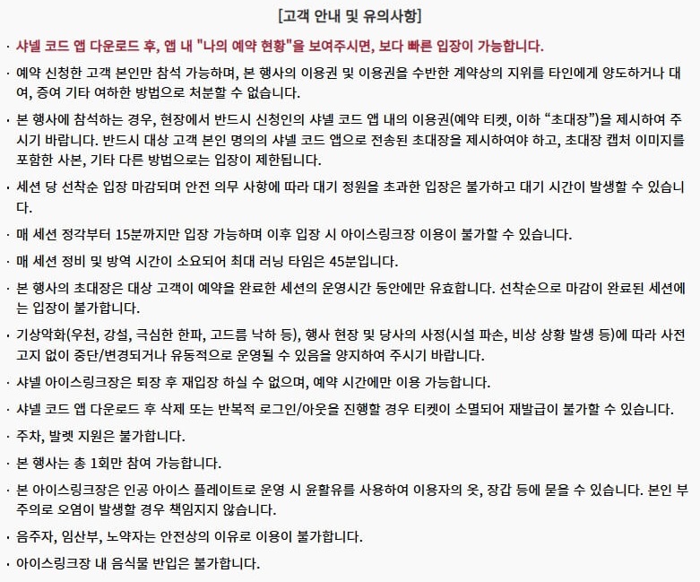 샤넬 아이스링크를 방문할 때는 몇 가지 유의사항이 있습니다.